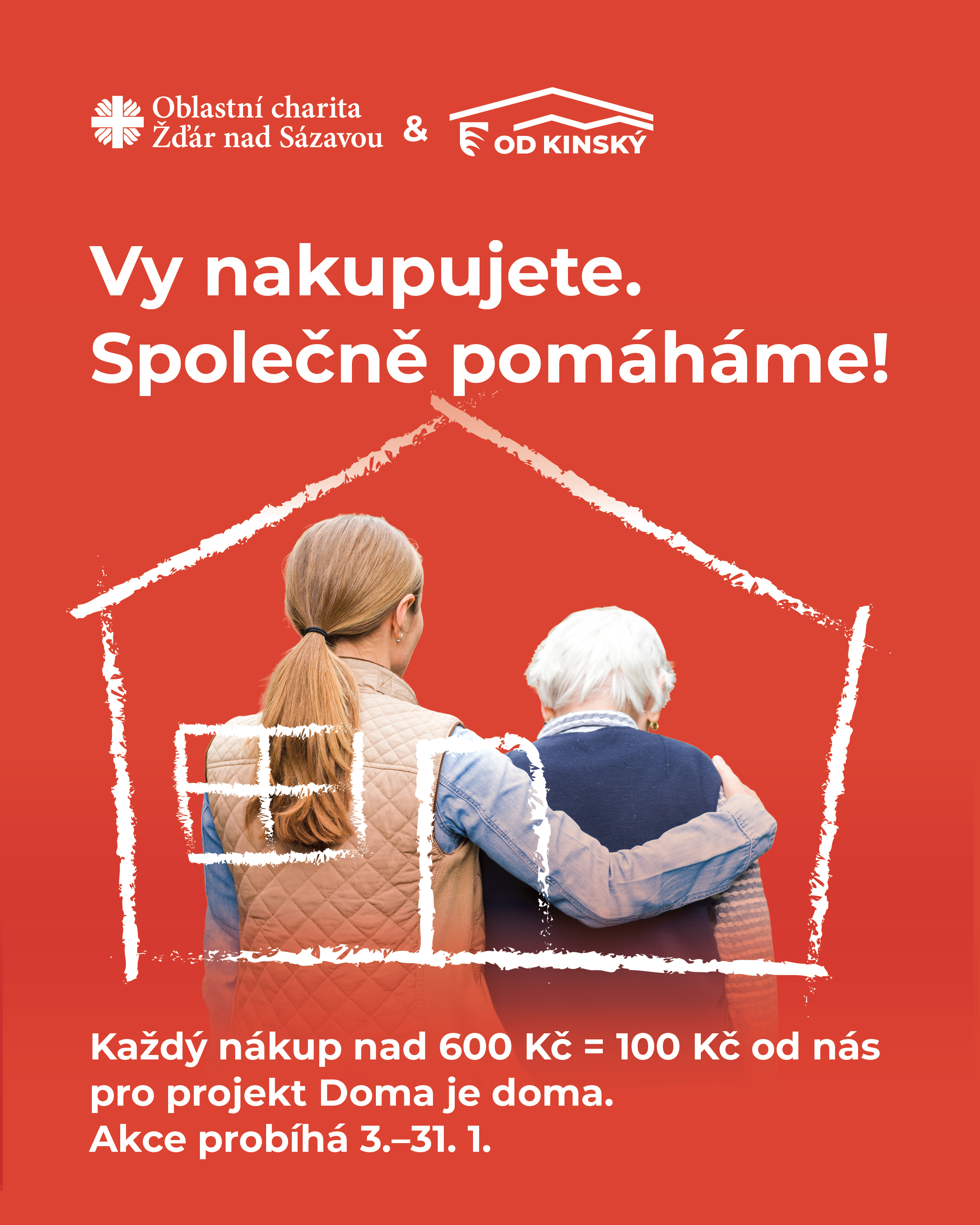 Zapojujeme se do charitativní iniciativy na podporu projektu Doma je doma, jehož cílem je pomáhat lidem v obtížných životních situacích znovu najít pocit bezpečí, stability. Protože v takové situaci se můžeme ocitnou každý z nás. Lidé z vašeho okolí, vaši sousedé, přátelé, i ti, o kterých se nemluví. Potřebují pomoc, která nestojí mnoho, ale hodně ulehčí situaci v celé rodině. Projekt Doma je doma je určen pro ty, kteří chtějí pečovat o své nejmilovanější v prostředí, které znají nejlépe a kde se cítí dobře. DOMA. Učinit takové rozhodnutí je ale těžké. Chodíme do práce, máme děti, máme své důležité povinnosti. Ale stojíme před otázkou, zda dokážeme pečovat o své blízké tak, aby nemuseli být odkázáni na péči mimo své domácí prostředí. A právě v tento okamžit je tu Oblastní charita Žďár nad Sázavou, která umí v takové situaci rodině poradit, pomoci. Zajistit péči, když musíme do práce, na kroužky dětí. Abychom měli sílu na péči, která je tak důležitá. A my jsme se rozhodli v Obchodním domě Kinský, že rok 2026 bude pro nás začínat tam, kam potřebujete věci, které u nás nakoupíte. DOMA! Co více spojuje domov s naším sloganem Vše pro dům, les i zahradu - než Doma je doma!